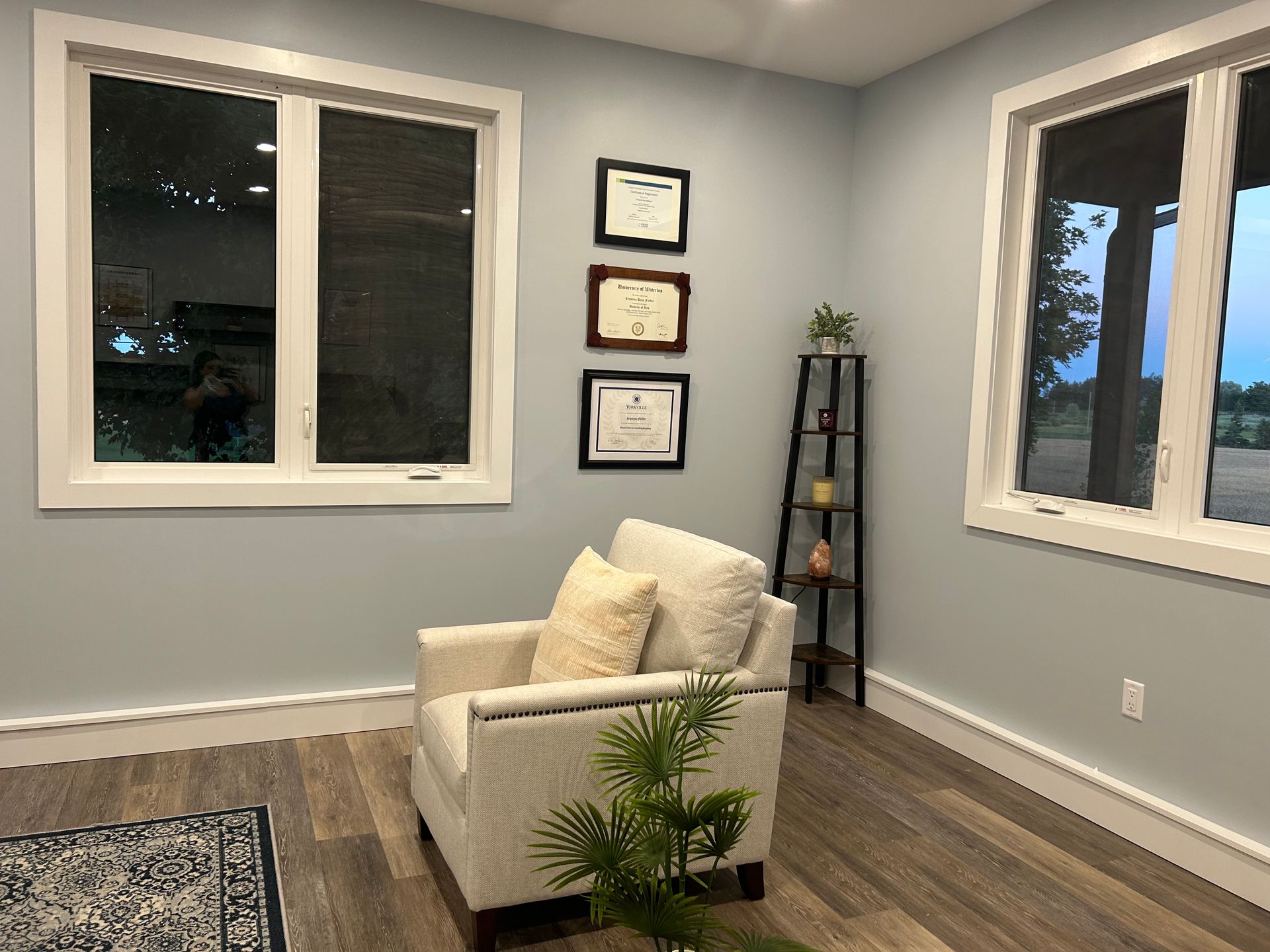 Your comfort matters! Feeling comfortable, both physically and emotionally is important. For that reason, both in person and virtual video sessions are offered. Whether you choose in person or virtual sessions being in a calm, comfortable space where you can feel like you have privacy and are safe is of utmost importance. If you decide to do virtual sessions, please pick a location where you can have privacy and a strong internet connection. Preferably, a quiet location where there isn't a concern for interruptions and where you can be physically comfortable. If you pick in office sessions, then know that the office is located out of town therefore providing extra privacy and noise machines are utilized to help ensure no details can be heard between offices. There is a couch and throw pillows so you can make yourself comfortable however you choose.